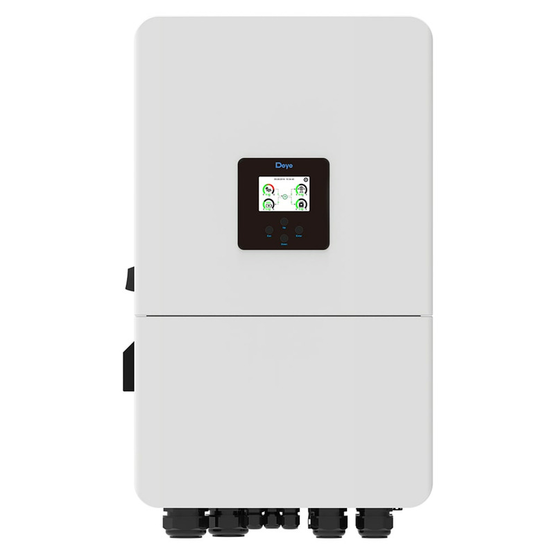 Deye SUN-20K-SG05LP3-EU-SM2 - трехфазный гибридный инвертор мощностью 20 кВт, сочетающий функции инвертора, солнечного зарядного устройства и контроллера аккумуляторов. Устройство поддерживает работу как от сети, так и в автономном режиме.