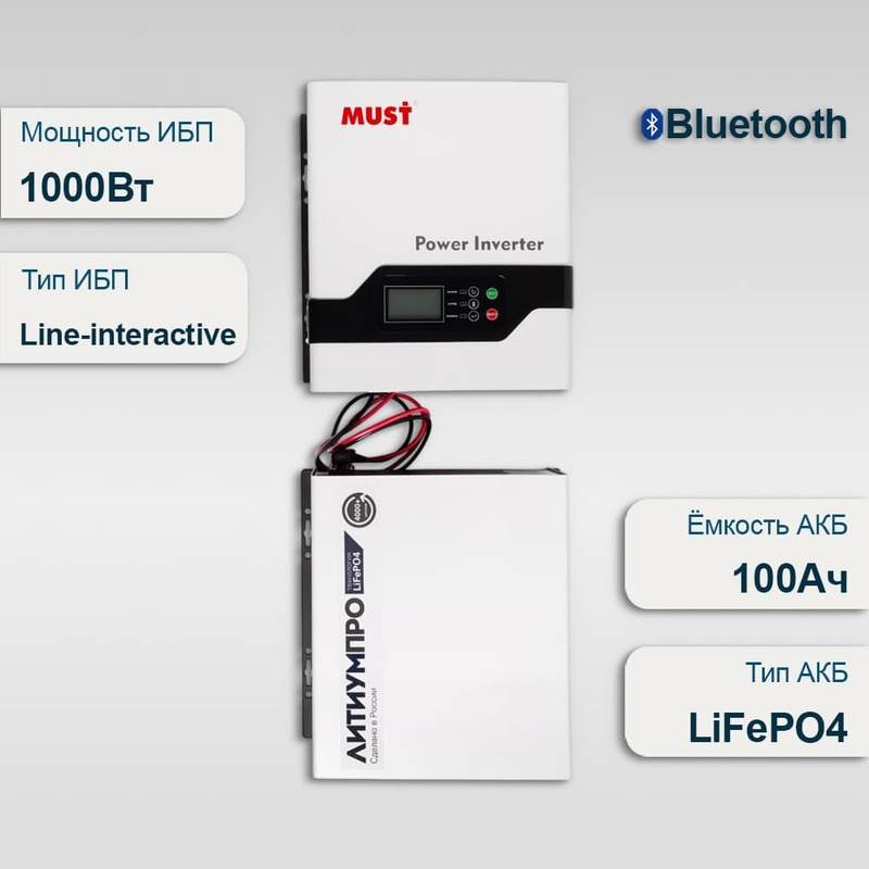 Комплект ИБП Must EP20-1000 PRO + АКБ ЛИТИУМПРО LFP 12-100TW-100
