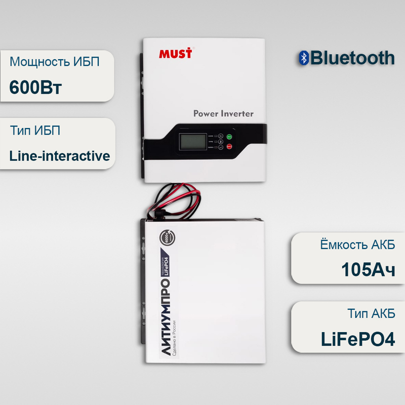 Комплект ИБП Must EP20-600 PRO + АКБ ЛИТИУМПРО LFP 12-105TW-60